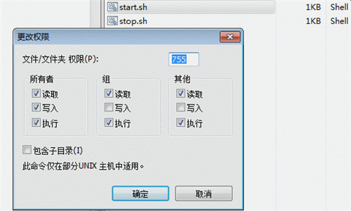 對于使用xshell執行./start.sh和./stop.sh都是需要權限的,若出現沒有權限,咱們可以使用xftp對start.sh郵件修改權限,按如圖所示,打上勾勾即可。