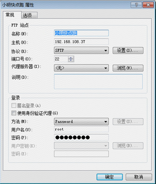 xftp連接界面如下,填空就可以了,很簡單不多說,提一下這里為什么選擇SFTP而不選擇FTP呢,看FTP與SFTP的區別 知多少就可以明白了!