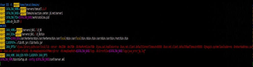 /bin目錄下面,start.sh文件和stop.sh文件都要修改,首先要指定jdk路徑,類似于配置環境變量,其次就是要,指定tomcat工作目錄的tomcat路徑,大家可以注意到,CATALINA_HOME和CATALINA_BASE分別對應tomcat的安裝目錄和工作目錄,然后大家從最后一行可以看到項目啟動使用的是安裝目錄下面的start.sh,但是項目啟動使用的tomcat配置文件則是每個應用tomcat自己所配置的配置文件。stop.sh也是同樣的道理。