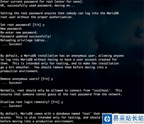 執行sudo yum install mariadb-server -y來安裝mariadb 啟動Mariadb并設置為開機自啟 a. sudo systemctl start mariadb b. sudo systemctl enable mariadb 執行sudo mysql_secure_installation來加固Mariadb。你會看到要求設置數據庫root密碼、移除匿名用戶、限制只能通過localhost登陸數據庫root用戶和移除test數據庫,這里推薦全部選Y(YES),如下圖所示,默認的數據庫root密碼為空除此之外,還要把mariadb監聽的地址改為127.0.0.1:3306