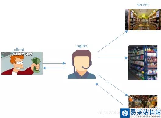 客戶告訴nginx 我要購買**商品,nginx就去對于的服務提供商取出對于服務并把它返回給客戶。