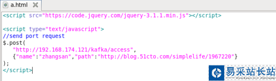 curl http://localhost/kafka/access -d "message send to kafka topic"curl http://localhost/kafka/access -d "小偉666"測試