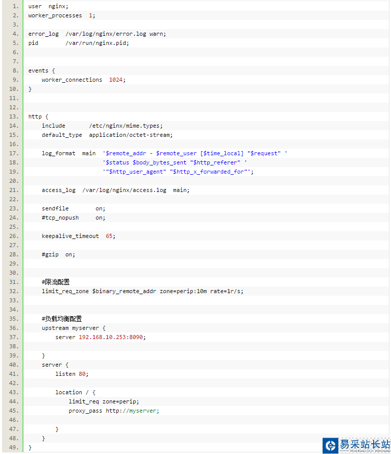 如上, nginx 的限流配置 , 只有兩行代碼.