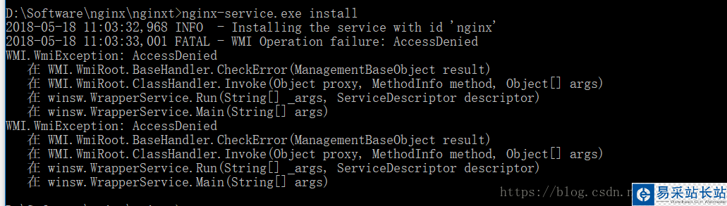 5.1 如果出現下面問題:說明沒有訪問權限,請找到命令指示器,選擇用管理員身份運行,使用命令切換nginx 目錄下d;