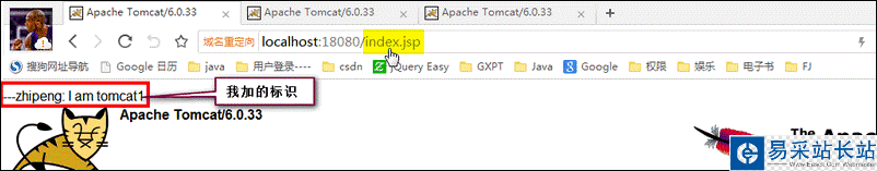 5、然后修改上面兩個Tomcat的默認頁面(為了區分下面到底訪問的是那一臺Tomcat,隨便改一下即可):