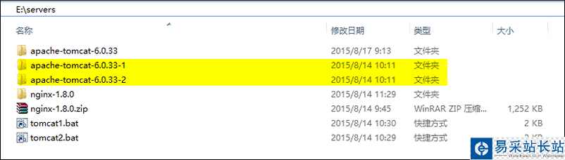 2、然后解壓兩個Tomcat,分別命名為apache-tomcat-6.0.33-1和apache-tomcat-6.0.33-2: