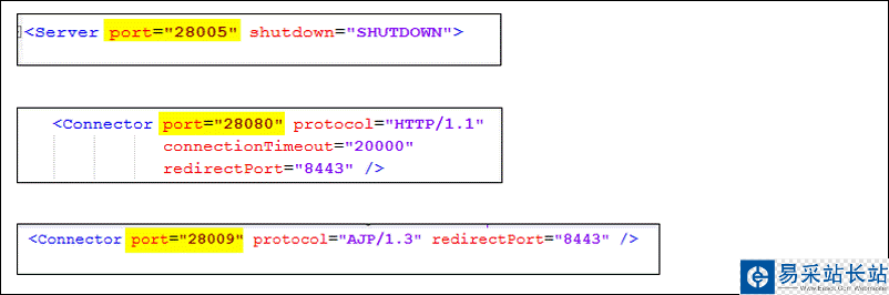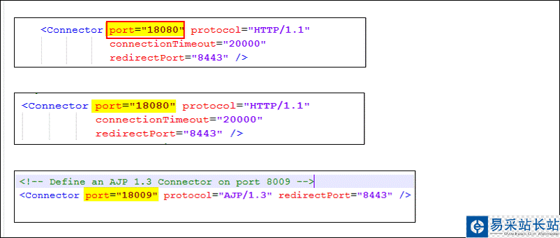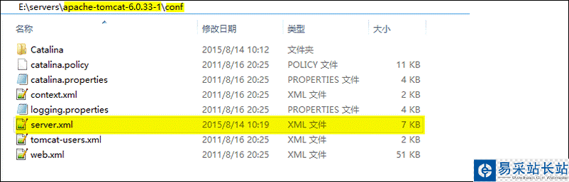 3、然后修改這兩個Tomcat的啟動端口,分別為18080和28080,下面以修改第一臺Tomcat為例,打開Tomcat的conf目錄下的server.xml: