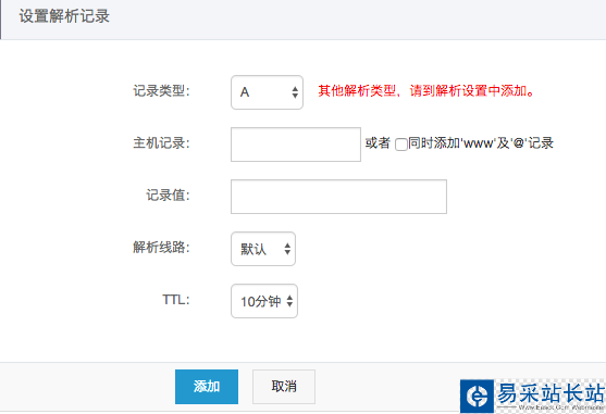 跳轉(zhuǎn)到解析設(shè)置頁(yè)面,其中記錄類(lèi)型默認(rèn)為 A 即可;