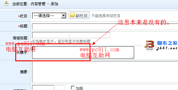 jeecms內容頁添加關鍵字方法
