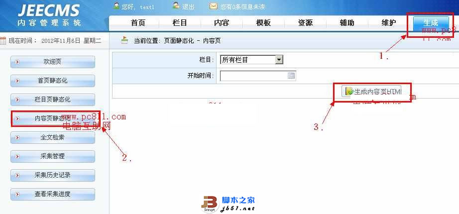 第8步:單擊菜單欄 生成》內容頁靜態化》生成內容頁HTML即可。