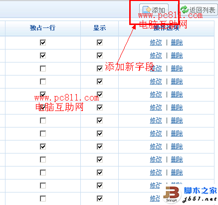 第5步:確定之后回到內容模型靜靜管理頁,我們再次檢查一下后面是否為顯示?排列順序選擇一下,把數字寫小一點。本文這里寫的是4,排在簡短標題下面。