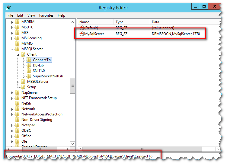二就是通過修改注冊表,因為如果修改Sql Server的通信端口,就必須服務器和客戶端同時修改,而SharePoint前段通常不安裝Sql,當然你也可以只安裝管理工具,或者通過修改注冊表的方式: