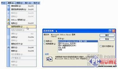打開Excel文件將圖表選中,選擇【編輯】菜單中的【復(fù)制】,然后打開需要插入圖表的幻燈片頁面,點(diǎn)擊【編輯】菜單中的【選擇性粘貼】,可以看到在“選擇性粘貼”中有二個(gè)選項(xiàng):“粘貼”和“粘貼鏈接”。