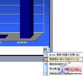 如果將Excel中的圖表插入到演示文稿中,而且不需要進(jìn)行修改的話,可以將Excel中的圖表選定后,點(diǎn)擊【編輯】菜單中的【復(fù)制】,在演示文稿中選擇【編輯】菜單中的【粘貼】,在圖表被粘貼到幻燈片中后,點(diǎn)擊【智能標(biāo)記】中的【圖表圖片】,這樣圖表就以圖片的方式添加到幻燈片中了。