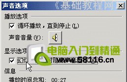 3)選中第一張幻燈片,點“插入-影片和聲音-文件中的聲音..”,在出來的提示框中選擇“自動播放”;
