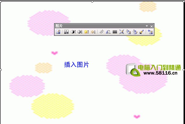 4)圖片插入到幻燈片中以后,可以拖動四周的圓點控制手柄使圖片充滿整個幻燈片,還可以在圖片工具欄上進行調節(jié);