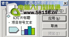 4)選擇一個淡黃色,點確定返回到對話框中,再點“應用”回到幻燈片中,這樣我們就給幻燈片加上了背景色;
