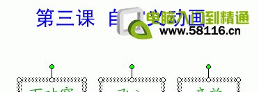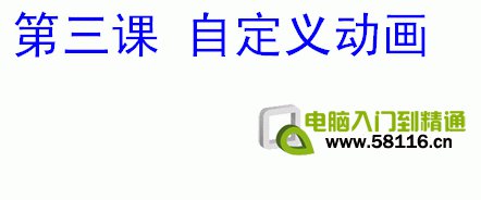 2)點菜單“插入-文本框-水平”命令, 插入一個水平文本框,輸入文字“第三課 自定義動畫”,設置文字格式,黑體、32號、藍色;
