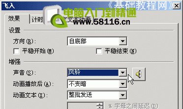 再選中第三個文本框,也設置為:“添加效果-進入-⒉飛入”;