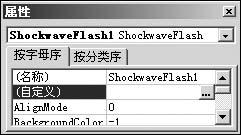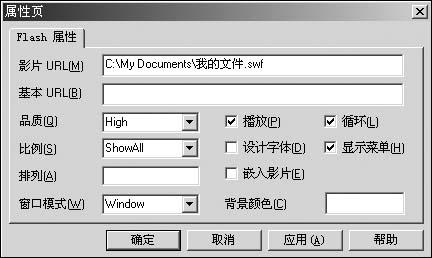 3. 也可以在“屬性”窗口“Movie”一欄右側的文本框中直接輸入Flash動畫的路徑(如圖4)而不用步驟6自定義的方式。