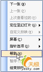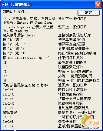 注意:如果上面這些按鍵和用法你記不住,可以在放映幻燈片過程中右鍵單擊(如圖2),再左鍵單擊“幫助”,就會打開“幻燈片義映幫助”對話框(如圖3),前面介紹的按鍵用法都在這里了。