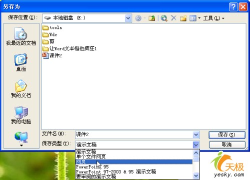 打開PPT文件,單擊“文件”→另存為,打開“另存為”對話框,在“保存類型”框中選擇“網頁”(注意不是單個網頁)(如圖5),單擊“保存”按鈕,就會生成一個與PPT文件同名的文件夾,在這個文件夾中,右鍵單擊選擇“排列圖標”→類型,這樣各類文件便分門別類的排列好了,相中那些就趕緊保存吧!(如圖6)