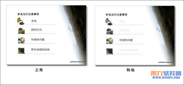 在每一標(biāo)題前添加圖標(biāo),要注意的是圖標(biāo)必須符合標(biāo)題的內(nèi)容,以幫助聽(tīng)眾能更好的記憶,否則為圖標(biāo)而圖標(biāo)就沒(méi)有意義了。在轉(zhuǎn)場(chǎng)的時(shí)候,將其他圖標(biāo)黑白化,將其他標(biāo)題淡化,來(lái)突出本段主題。