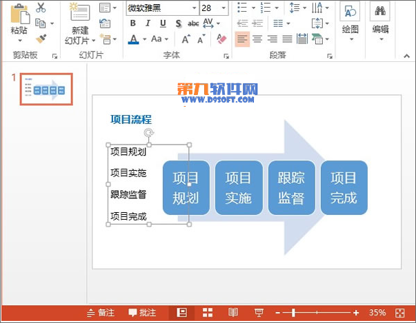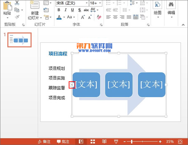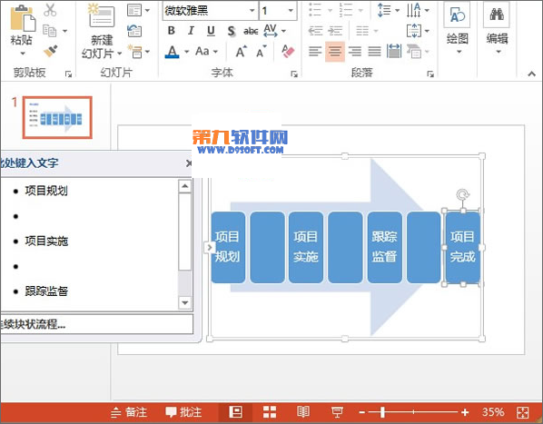 3、SmartArt圖形插入完成,點擊箭頭,可以一次性輸入文字。