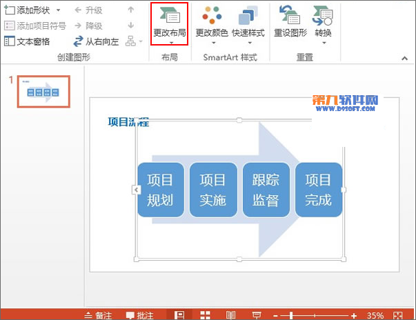 6、 這樣初略的圖形已經制作好了,樣子并不是那么美觀,我們單擊設計選項卡中的更改布局選項。