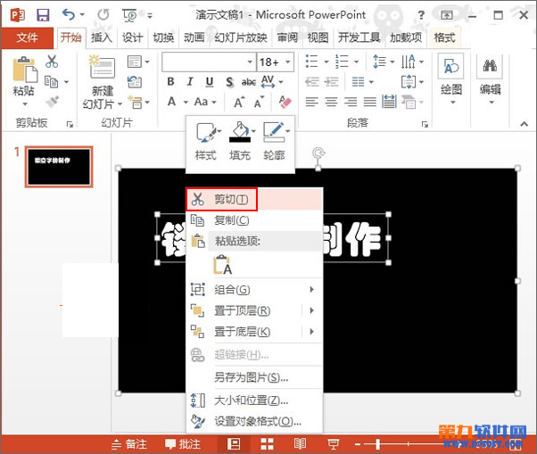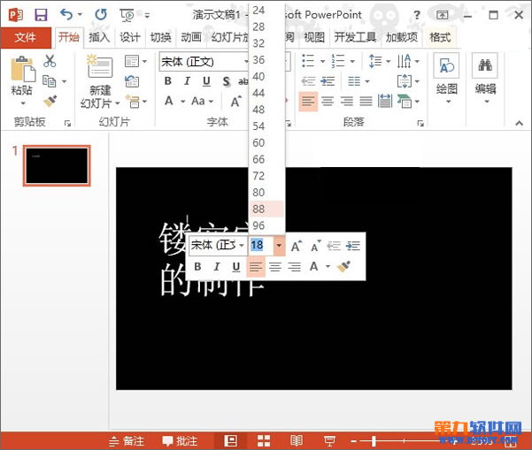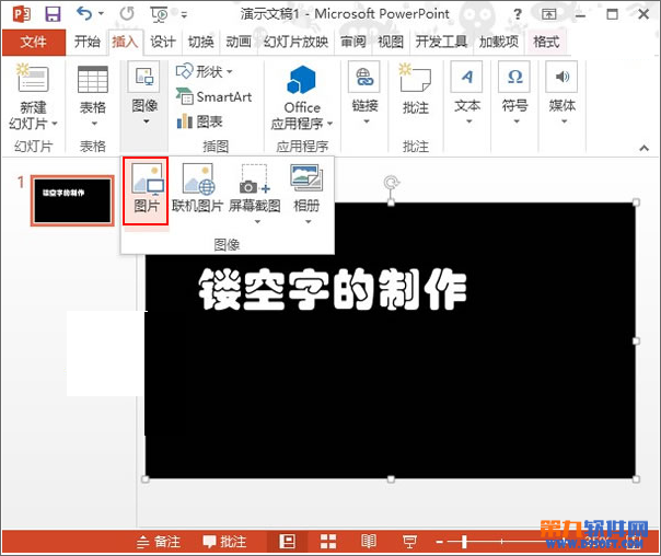 3、插入一個文本框,輸入文字:鏤空字的制作,設置字型字號。