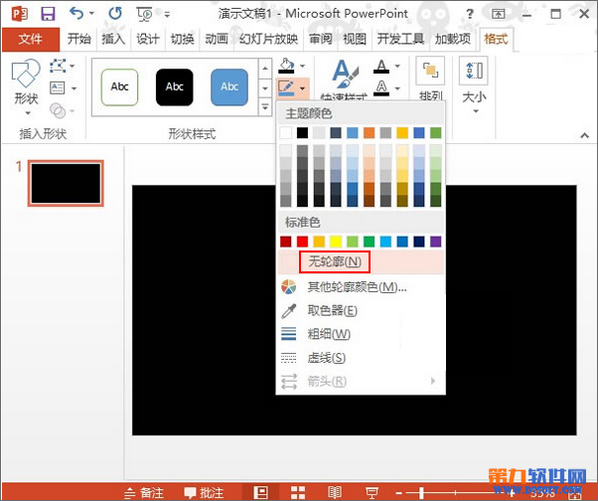 2、然后在形狀輪廓中,將黑色矩形調整為無輪廓。
