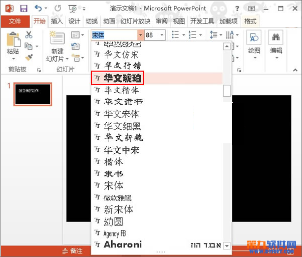 4、選中文本框內的文字,將文字設置為華文琥珀。
