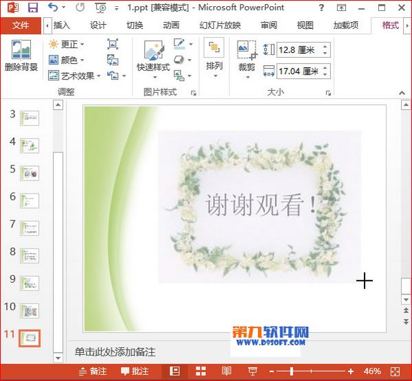 1、用PowerPoint2013打開一篇文稿,并選中我們需要插入圖片的那張幻燈片,切換到“插入”選項卡,然后單擊“圖像”選項組下的“圖片”按鈕。