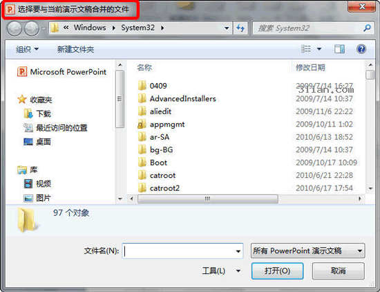 點擊“比較”,將彈出新的窗口(選擇要與當前演示文稿合并的文件)如圖所示:
