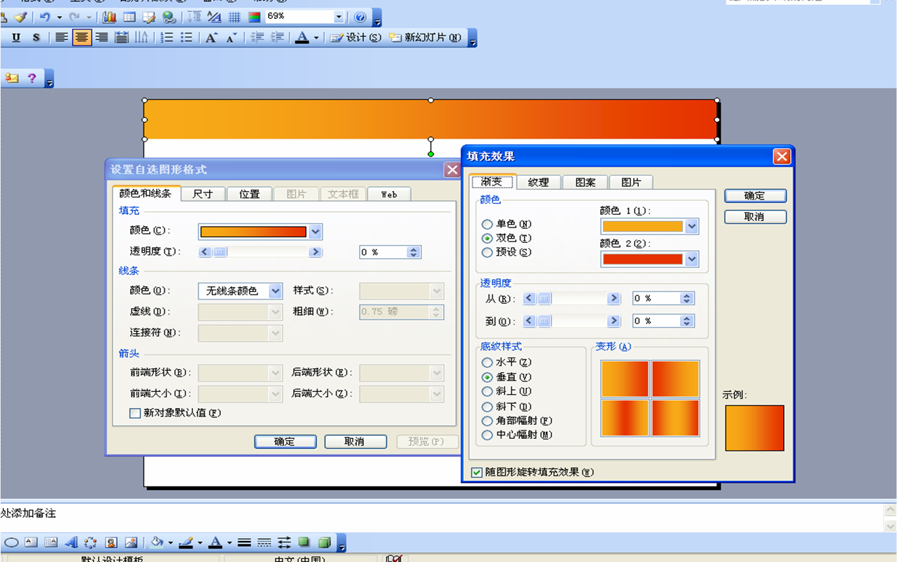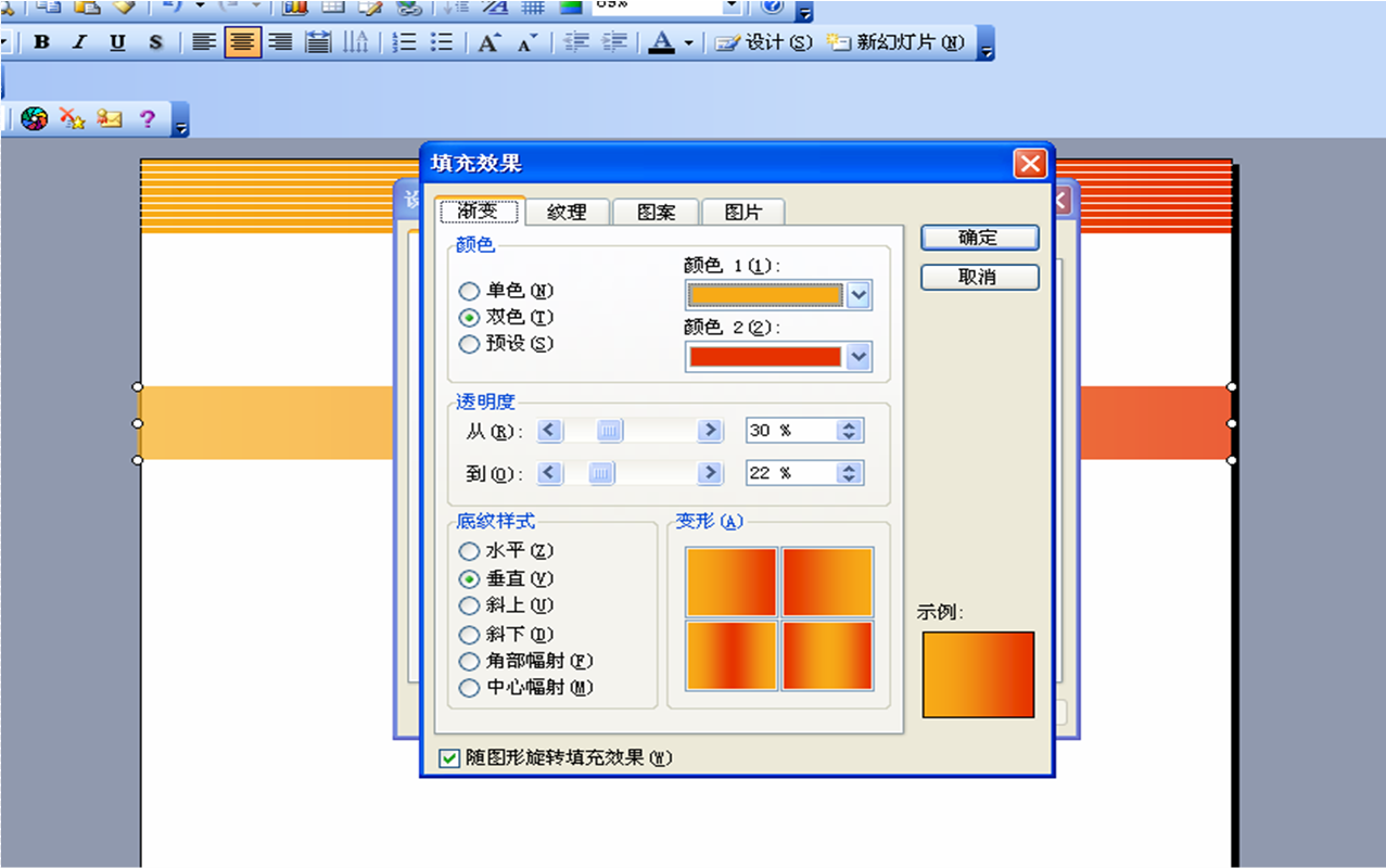 雙擊矩形,填充顏色,雙色(找兩個自己看著舒服的),垂直: