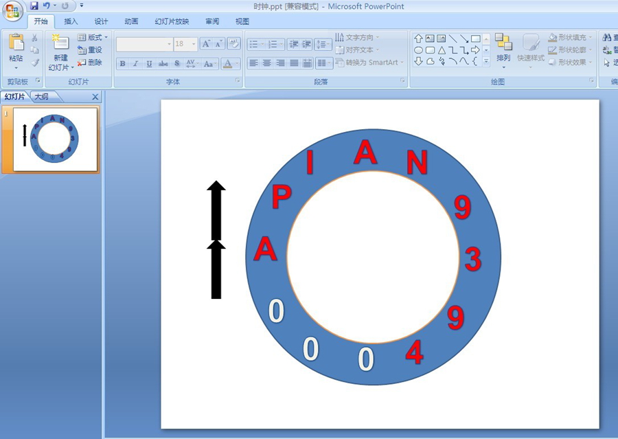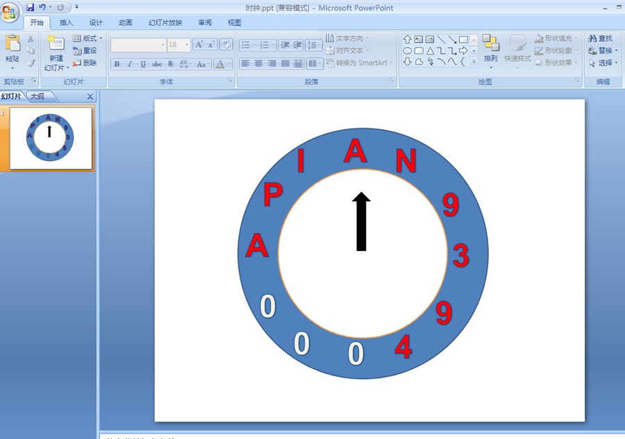 9、按上面同樣的方法,用箭頭分別作出分針和秒針,并疊放在一起,注意層次(鐘面最底層,接著秒針,再分針,最上面時針)分針和秒針設置同樣的動畫,但分針效果選項下的速度輸入“01:00:00秒”,秒針速度輸入“01:00秒”,其他設置跟時針一樣。