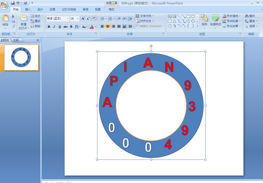 1、畫一大一小兩個圓,大的用藍色填充、置于底層,小的用白色填充,然后把兩個圓同心疊放,選擇組合。