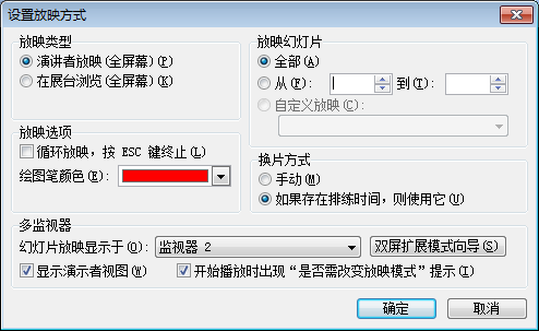 第2步:設置放映方式。用WPS演示打開要播放的PPT幻燈片,單擊“幻燈片放映→設置放映方式”,在“幻燈片放映顯示于”后選擇“監視器2”,如圖2所示。