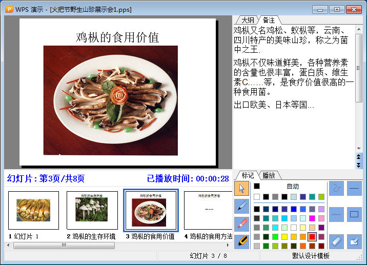 第3步:播放。播放時筆記本上的界面如圖3所示,而投影儀上只顯示幻燈片的主界面,即圖3的左上角部分,這貌似平常的播放方式背后卻隱藏著大量玄機: