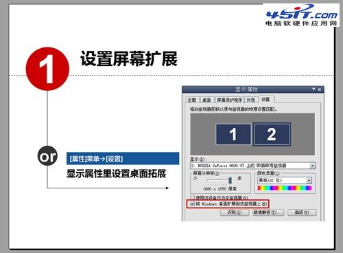首先,鏈接投影后,將屏幕拓展到投影用的監視器(不是屏幕復制),筆記本有對應的快捷鍵。