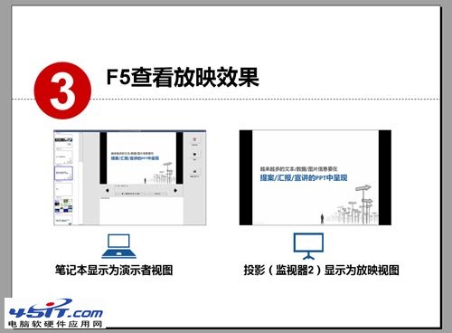 按F5放映后,兩個屏幕的效果如下圖顯示。