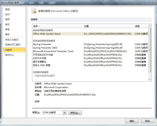 第三步:選擇“COM加載項(xiàng)”,點(diǎn)擊轉(zhuǎn)到…,然后把你啟動(dòng)時(shí)不需要加載的一些選項(xiàng)干掉吧。