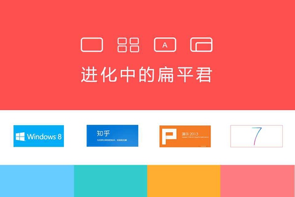這個(gè)PPT講的是跟扁平化相關(guān)的東西,那么我希望視覺(jué)呈現(xiàn)也是扁平化的,以達(dá)到形式和內(nèi)容的統(tǒng)一。