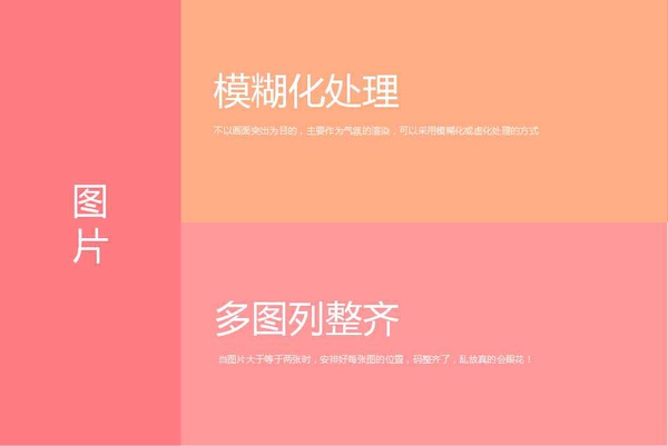 PPT里用到的圖片主要分為兩種:背景圖、內(nèi)容圖(必要的插圖、圖表等),用來(lái)當(dāng)做背景的圖,為避免信息冗余,我們可以對(duì)其進(jìn)行模糊化處理,從而突出文字信息。如果是內(nèi)容圖,單張的相對(duì)好處理,一旦圖片數(shù)量多了不好好排列就會(huì)非常雜亂。