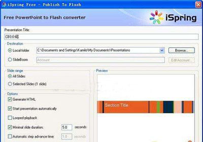 iSpring可以幫你將PPT文檔轉(zhuǎn)換成Flash文件,也可以讓你直接用瀏覽器打開播放,同時(shí)PPT文檔的體積也會(huì)大幅度的下降,是個(gè)非常不錯(cuò)的PowerPoint插件。
