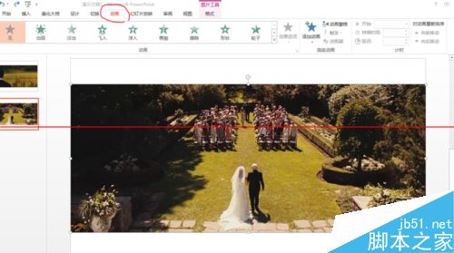 2、在第二個幻燈片,選擇其中一個圖片,再選擇“動畫”添加任一動畫效果。