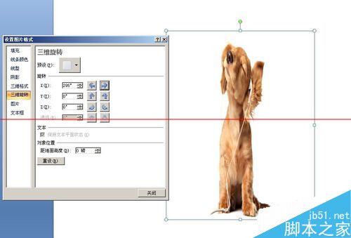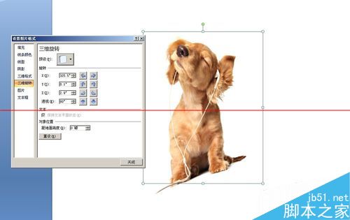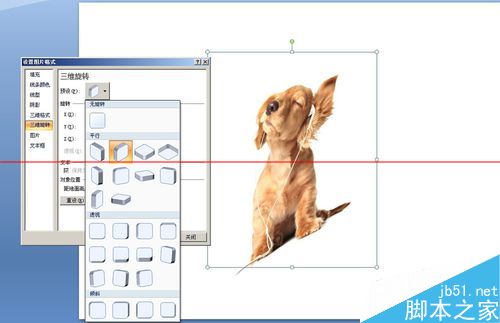 4、在“設(shè)置圖片格式”中,選擇“三維旋轉(zhuǎn)”。里面可以進(jìn)行角度控制的旋轉(zhuǎn)。