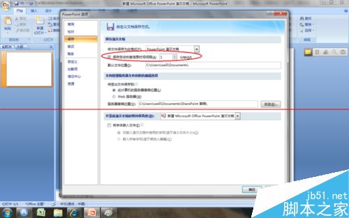 3、勾選“保存自動恢復信息時間間隔”,并根據自己需求設定時間,如將10分鐘改為1分鐘。確定之后,文檔每隔設定的時間就會自己保存一次,這樣就不用擔心自己的內容因為司機或斷電丟失了。