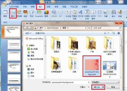 進(jìn)入幻燈篇母版視圖后,菜單——插入——圖片——選擇作為ppt背景圖片——插入。