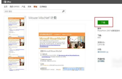 在微軟中國(guó)官網(wǎng)上,點(diǎn)擊導(dǎo)航欄 "模板"中的 "power point" 頁面,尋找自己需要的模板,點(diǎn)擊 "下載"。